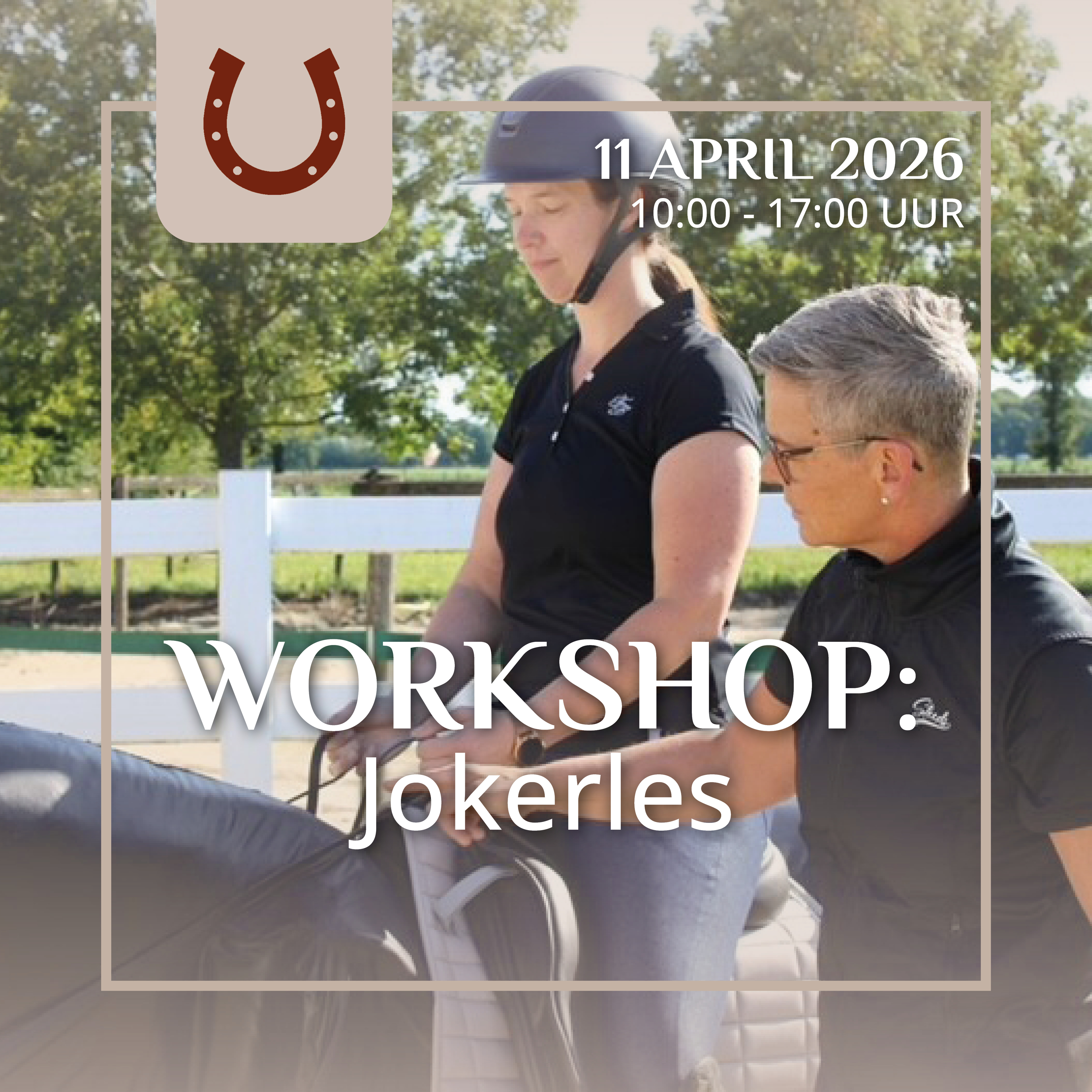 Ontdek de Jokerles met Emmy van Ruiter & Zit tijdens deze unieke workshop. Emmy werkt met haar Paard Joker om jouw houding en zit gericht te analyseren en te verbeteren.