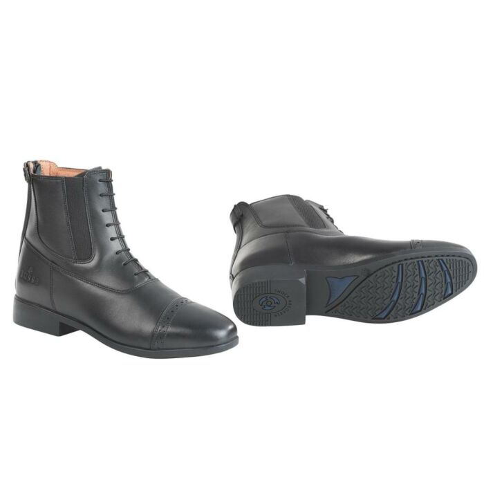 Uitstekende Jodhpur-enkellaarzen van het merk Busse, overtuigend in ontwerp en comfort. Het materiaal is gemaakt van de beste koeienhuid en heeft een lederen voering gecombineerd met sneldrogend nylon materiaal. De schoen heeft een uitneembare, voorgevormde comfortabele binnenzool met hielkussen, extra schokabsorberend en drukverlagend voor de hele dag comfort.