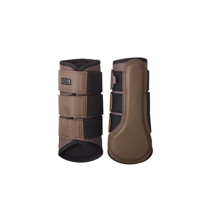 De Beenbeschermers Kingsland Lexie in de kleur Brown Iron in maat L zijn stevige en comfortabele beenbeschermers die optimale bescherming en ventilatie bieden tijdens training en wedstrijd.