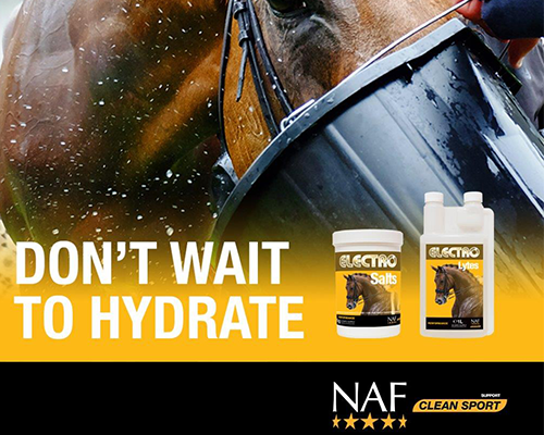 Lang voordat er sprake is van uitdroging, zie je al subtielere veranderingen bij het paard, zoals sloomheid, lusteloosheid en een mindere prestatie. Om er zeker van te zijn dat je paard kan blijven presteren door de dag, wordt het daarom aangeraden om tussentijds te voeren bij zwaar werk. Vergeet daarbij niet het verloren vocht aan te vullen! Het toedienen van electrolyten in een gemakkelijk waterhoudend product, zoals NAF Liquid Electro Lytes, is een goede manier om te beginnen met het aanvullen van het verloren vocht. Natuurlijk moet een paard ook altijd kunnen beschikken over schoon, fris water. NAF ElectroSalts voorzien in de essentiële zouten in een eetbare, geconcentreerde vorm en zijn ideaal om aan voer of water toe te voegen.