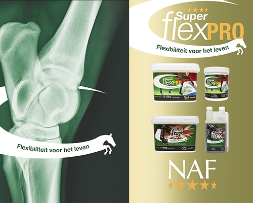 Om gezondheid te kunnen handhaven bij sportpaarden, wordt doelgerichte voeding aanbevolen gedurende hun hele wedstrijdloopbaan. NAF Superflex Pro voorziet in een complex van sleutel voedingsstoffen om de gewrichtsgezondheid te ondersteunen en de gezondheid bij paarden met zwaar werk te handhaven. Superflex Pro bevat een prima hoeveelheid van glucosamine als een belangrijke bouwsteen voor kraakbeen. Het is veilig om glucosamine langer te geven. Glucosamine is een belangrijk groei-element gedurende de loopbaan van een paard. MSM (methylsulfonylmethaan) is een organische verbinding die rijk is aan zwavel, een belangrijk bestanddeel voor de gewrichten, werkend op het zachte bindweefsel van de pezen en ligamenten van het gewricht.