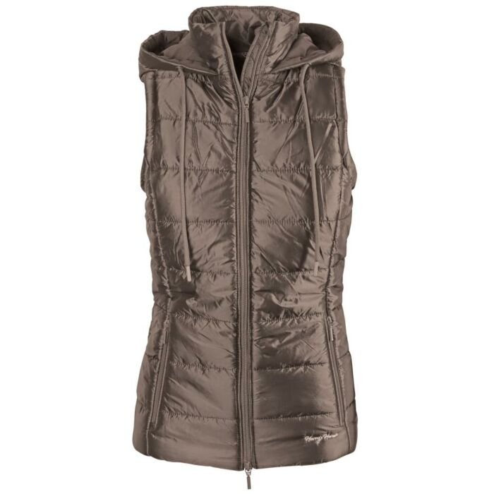 Bodywarmer Harry's Horse Sporty Scotti Chocolate Chip met capuchon, tweeweg ritssluiting en zakken met rits.
