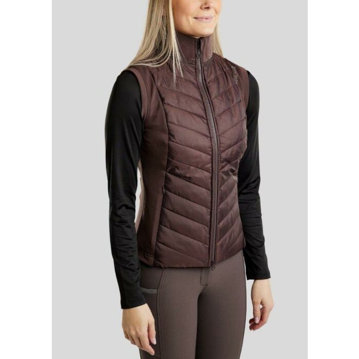 De Montar MoEmilia bodywarmer in Black Peony combineert sportieve elegantie met subtiel sprankelende details. Dankzij de hybride constructie met gewatteerde panelen en soepele softshell is deze bodywarmer de perfecte keuze voor ruiters die stijl, comfort en bewegingsvrijheid willen samenbrengen.