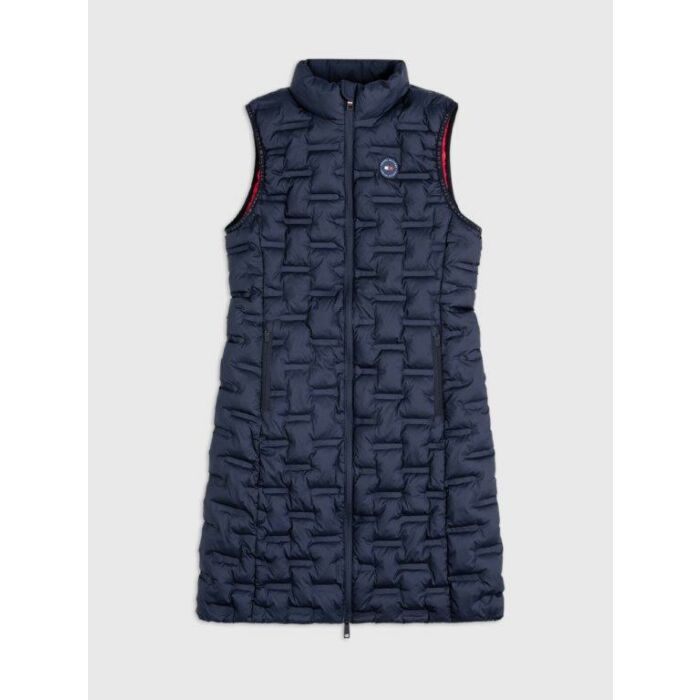 De Tommy Hilfiger Bodywarmer Maine in de kleur blauw is een duurzame en stijlvolle keuze voor lange, koude stalwerkdagen. Dit lange puffer bodywarmer is voorzien van technische, niet-gestikte quilttechnologie, wat zorgt voor extra warmte zonder compromissen op het gebied van comfort of flexibiliteit. Gemaakt met 100% gerecyclede vezelvulling van PET-flessen, biedt deze bodywarmer zowel warmte als duurzaamheid. De armopeningen zijn afgewerkt met elastische TH-logo bies voor een aansluitende pasvorm. Aan de binnenkant vind je een contrasterende voering met een reliëf-TH-logo, en op de achterkant is het Hilfiger-logo geprint, met een rubberen ID daaronder voor een luxe touch. Het rubberen logopatch op de linkerborst en de verborgen ritszakken met logotrekkers voegen extra functionaliteit toe. Aan de achterkant van de zoom bevinden zich ritsen voor meer bewegingsvrijheid. Daarnaast heeft de bodywarmer een handige borstzak voor je telefoon en subtiele Global Stripe-accenten. De 2-weg ritssluiting met logotrekker maakt dit een veelzijdig en comfortabel item voor elk winteravontuur. Nu verkrijgbaar bij Ruitersport Equidrôme!
