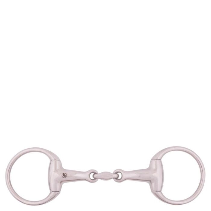 Deze Bustrens van het Merk BR is dubbel gebroken, massief roestvrij staal, ringen 65 mm. Het mondstuk heeft een dikte van 18 mm.