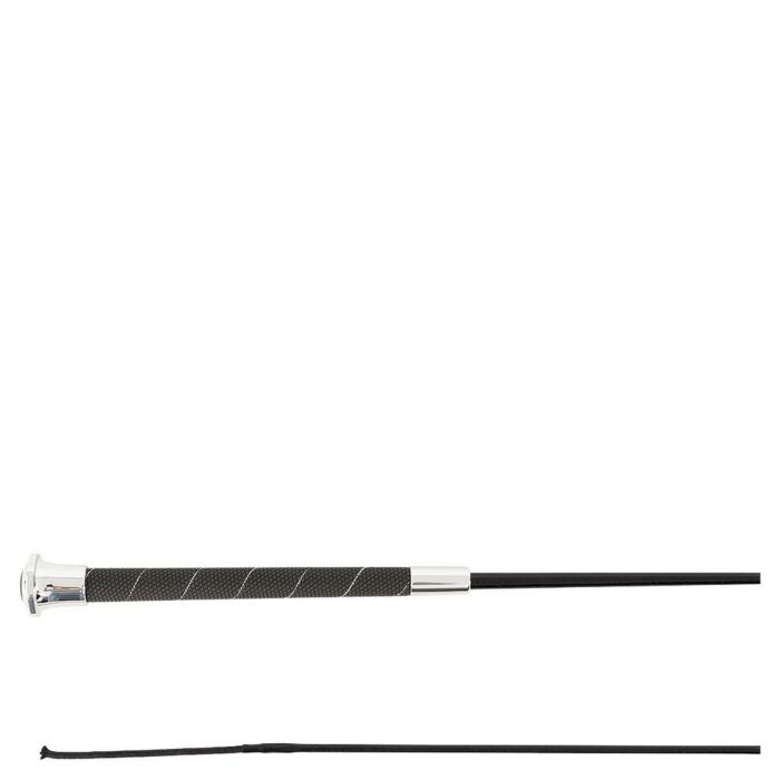 De BR Dressuurzweep Scorpius in de kleur Zwart/Zilver is een stijlvolle en functionele toevoeging aan je uitrusting, perfect voor ruiters die kwaliteit en elegantie willen combineren. Deze zweep valt op door zijn glanzende afwerking en verfijnde details, zoals de zilverkleurige knop en het subtiel glinsterende spiraaldraadje rond het handvat.