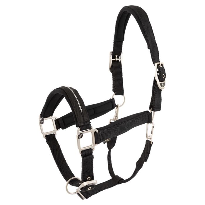 Comfortabel en stevig halster in maat Cob, voorzien van zachte neopreen voering bij het kopstuk en de neusriem voor extra draagcomfort en een verstelbare pasvorm die eenvoudig aan te passen is aan het paardenhoofd.