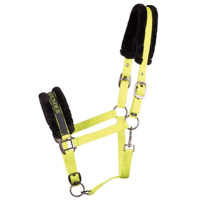 De binnenzijde is gevoerd met zacht zwart kunstbont dat comfort en stijl combineert. Door de verstelbare riemen aan het kopstuk en onder de kaak pas je het halster eenvoudig aan. De metalen oogjes op de gaatjes zorgen voor een nette afwerking en extra duurzaamheid. Laat je paard schitteren met dit halster, verkrijgbaar bij Ruitersport Equidrôme in Venlo.