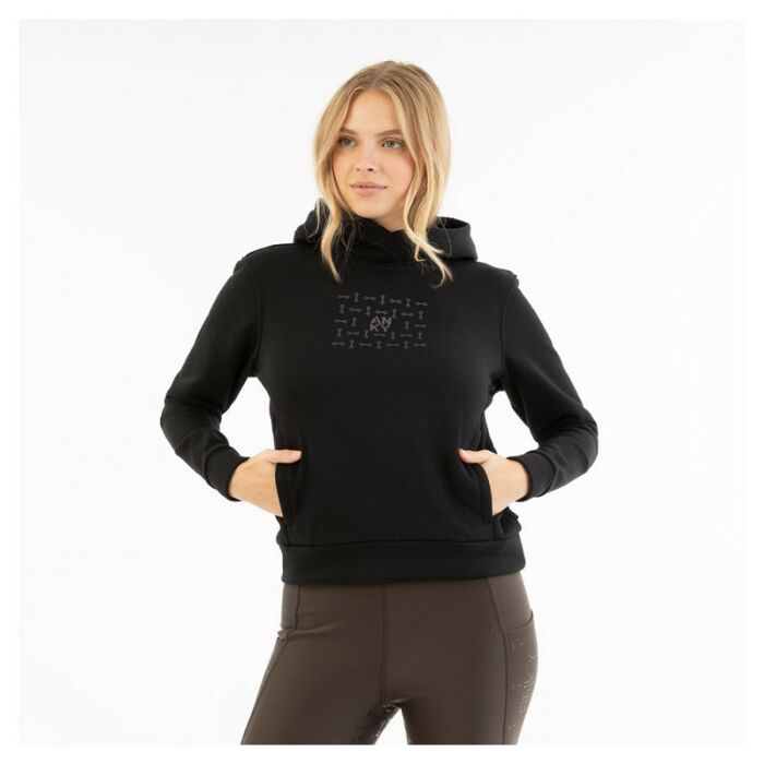 De Anky hoodie Black is een onmisbaar kledingstuk voor iedere ruiter die houdt van comfort en stijl. Deze hoodie is gemaakt van ademende, rekbare en zachte stretchstof die knus aanvoelt en je warm houdt tijdens koelere dagen. Dankzij de losvallende pasvorm geniet je van optimale bewegingsvrijheid en een casual uitstraling, ideaal voor in de stal, onderweg of gewoon in je vrije tijd. De hoodie is voorzien van een praktische kangoeroezak die niet alleen handig is om je handen warm te houden maar ook ruimte biedt voor kleine spullen. De dubbellaagse capuchon geeft extra warmte en bescherming tegen de wind terwijl de sportieve logoprint op de voorkant het ontwerp een eigentijdse en herkenbare uitstraling geeft. De Anky hoodie Black is verkrijgbaar bij Ruitersport Equidrôme in Venlo.