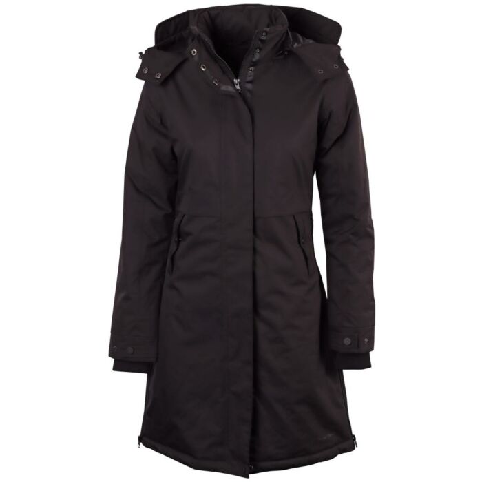 Jas Harry's Horse Joey Jet Black, waterdicht en lang model met capuchon, split met rits en getapete naden voor optimale bescherming tegen regen.