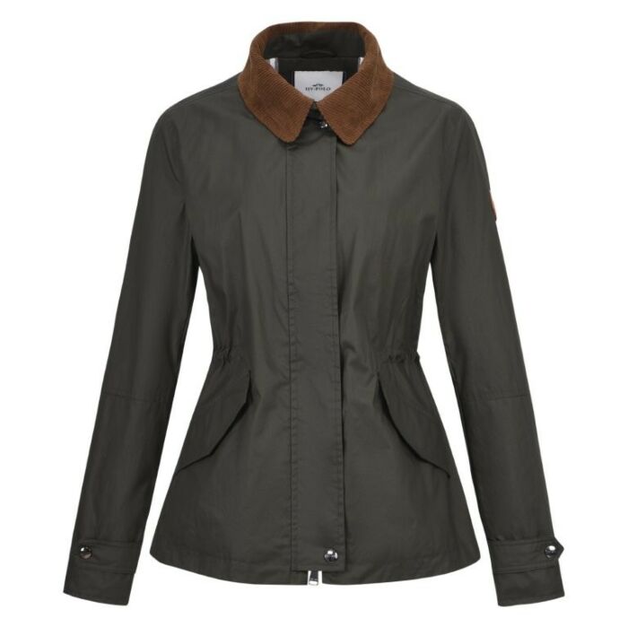 De Jas HV Polo Morgane in de kleur Pine is een elegante en functionele damesjas die perfect past bij een actieve ruiterlevensstijl. De jas heeft een licht getailleerde pasvorm die mooi aansluit op het lichaam en zorgt voor een vrouwelijke uitstraling, terwijl je toch voldoende bewegingsvrijheid behoudt. De stevige maar comfortabele buitenstof beschermt tegen wind en lichte regen, waardoor deze jas ideaal is voor wisselende weersomstandigheden. De contrasterende corduroy kraag geeft de jas een klassieke en luxe uitstraling, terwijl de taille subtiel te verstellen is voor een perfecte fit. Praktische zakken bieden ruimte voor je essentials tijdens het werk op stal of een wandeling buiten. Deze jas combineert moeiteloos functionaliteit met stijl en is verkrijgbaar bij Equidrôme in Venlo en online.
