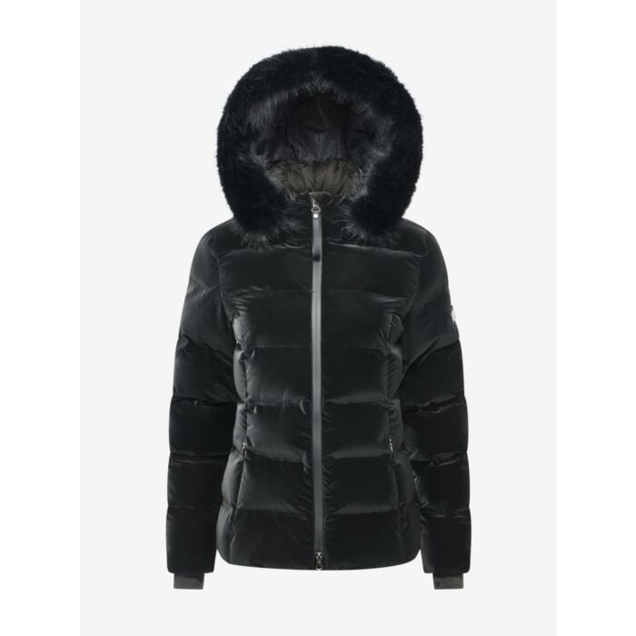 De afneembare capuchon met imitatiebont en de subtiele pied-de-poule-voering in de kraag, rits en mouwen geven de jas een chique uitstraling. Dankzij de ventilatieopeningen met rits onder de armen geniet je van optimaal ademend vermogen wanneer de intensiteit toeneemt. De met fleece gevoerde zakken en zachte elastische boorden met duimgaten zorgen voor extra comfort tijdens koude winterdagen.