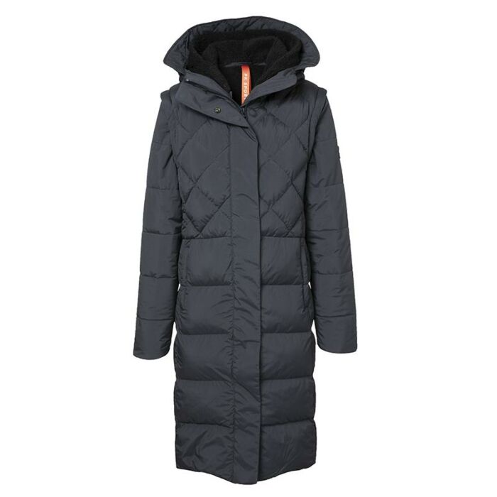 Ontdek de veelzijdigheid van de 2-in-1 lange winterjas "Everest" uit de wintercollectie 2024 van PK International, verkrijgbaar in de stijlvolle kleur Charcoal. De mouwen zijn uitritsbaar, waardoor je deze jas eenvoudig kunt aanpassen aan verschillende weersomstandigheden. De ruitvormige stepping voegt een stijlvolle touch toe, terwijl de drukknopen in de zijnaad ervoor zorgen dat je ook comfortabel kunt paardrijden. De dubbele capuchon is uitneembaar en voorzien van teddy met PK SPORTS letters voor extra warmte en een trendy uitstraling. In deze jas blijf je gegarandeerd warm en beschermd tegen het koude en natte weer deze winter. Deze veelzijdige jas is nu te koop bij Ruitersport Equidrome, zowel in de winkel als online!