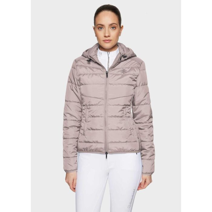Jas Samshield Davos Latte maat M is een premium dames paardrijjas met gewatteerde afwerking en moderne uitstraling, verkrijgbaar bij Equidrôme in Venlo en online.