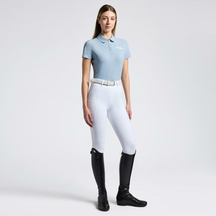 Het Cavalleria Toscana shirt in lichtblauw combineert stijl en functionaliteit voor ruiters die op zoek zijn naar comfort en een verfijnde uitstraling. Dit shirt is gemaakt van hoogwaardig, ademend materiaal dat zorgt voor optimale ventilatie en bewegingsvrijheid tijdens het rijden. De subtiele, elegante afwerking en het geborduurde Cavalleria Toscana-logo op de borst geven het een exclusieve uitstraling.