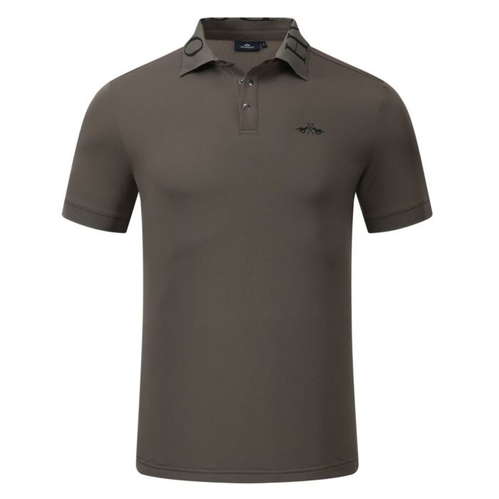 De polo is gemaakt van functioneel materiaal met 4-way stretch, wat zorgt voor optimale bewegingsvrijheid en een ontspannen pasvorm. Dankzij de quick-dry technologie blijf je koel en droog, zelfs tijdens warme dagen of intensieve activiteiten. De flat-knit kraag en manchetten voegen een klassieke touch toe, waardoor de polo tijdloos en veelzijdig is. De verfijnde details, zoals de glinsterende tekst in rhinestones op de rechterzijde naast de centrale knoopsluiting en de metallic paardenprint in stippen op de linkermouw, geven de polo een chique uitstraling. De metalen drukknopen aan de voorkant zorgen voor een praktische en moderne afwerking. De Polo HV Polo Mason in Stone is de perfecte combinatie van functionaliteit en stijl, ideaal voor zowel sportieve als casual gelegenheden. Verkrijgbaar bij Ruitersport Equidrome, dé plek voor hoogwaardige en stijlvolle paardensportmode!