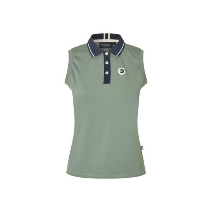 De Polo mouwloos Kingsland Laura in de kleur Green Agave in maat L is een comfortabele en luchtige polo met een sportieve uitstraling voor actieve ruiters.