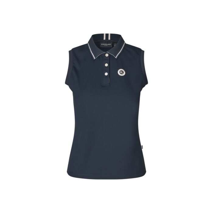 De Polo mouwloos Kingsland Laura in de kleur Navy in maat L is een functionele en stijlvolle polo met ademende eigenschappen, perfect voor ruiters die comfort belangrijk vinden.
