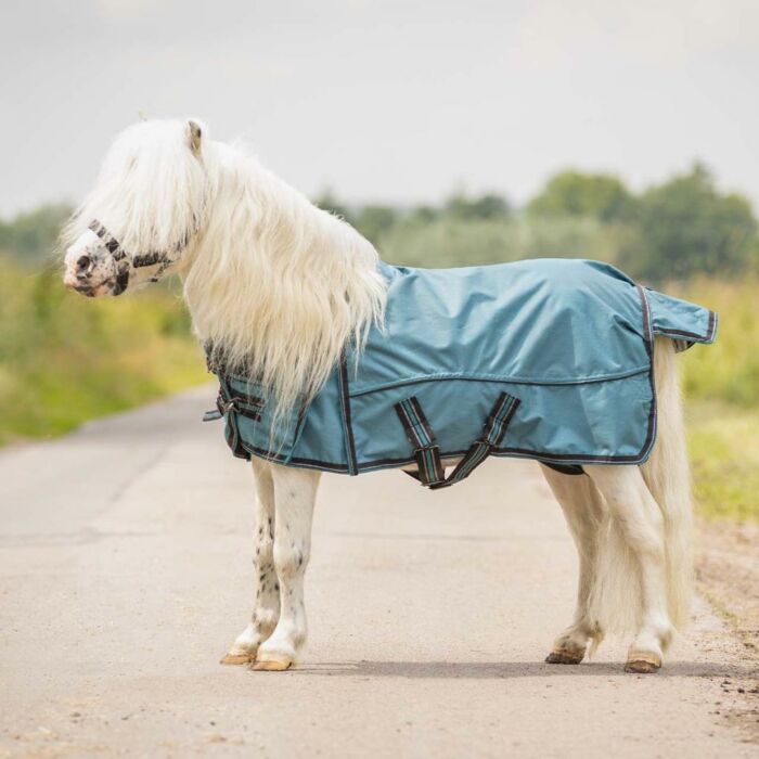 Bescherm je Falabella deze zomer tegen regen en wind met de Regendeken QHP turnout collection Falabella uit de zomercollectie 2025, uitgevoerd in de elegante kleur Ocean Breeze. Deze speciaal ontworpen turnoutdeken biedt een perfecte pasvorm voor Falabella's en combineert duurzaamheid met comfort, ideaal voor elk zomerseizoen.