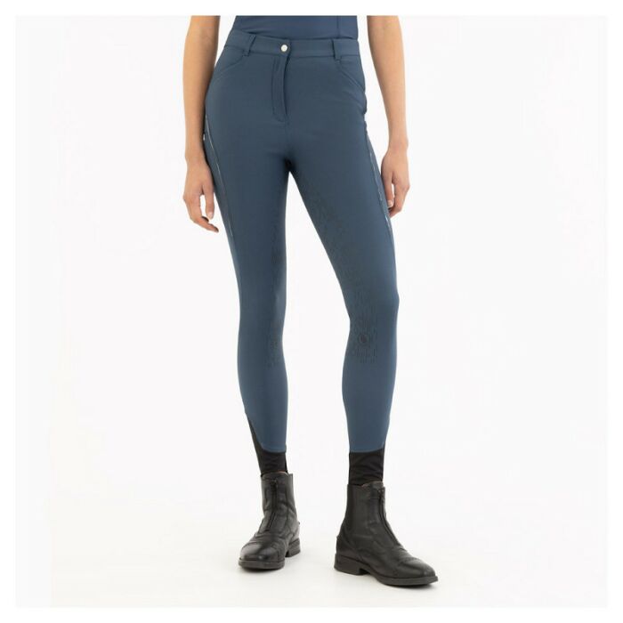 Dankzij de siliconen grip biedt deze rijbroek maximale stabiliteit in het zadel, wat zorgt voor een stevige en veilige zit. De stretch tailleband met enkele sluiting en riemlussen zorgt voor een nauwsluitende en comfortabele pasvorm. Praktische details zoals de jeanszakken geven de broek een casual uitstraling, terwijl de zilverkleurige BR-print op de linkerzak en de fancy siliconen bies langs de zijnaad subtiele, stijlvolle accenten toevoegen. Voor extra gemak is de rijbroek uitgerust met een zak op de rechterpijp die geschikt is voor een mobiele telefoon, zodat je jouw essentials altijd bij de hand hebt. Het BR-label aan de achterkant geeft een luxe finishing touch. De Big Dipper kleur is stijlvol en tijdloos, perfect te combineren met diverse tops en accessoires. Of je nu traint, wedstrijden rijdt of geniet van een ontspannen buitenrit, de BR Ingeborg rijbroek biedt alles wat je nodig hebt: comfort, grip en een trendy uitstraling.