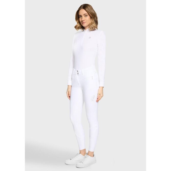 Rijbroek Samshield Capucine Crystal Ferna fullgrip White maat 32 is een luxe witte wedstrijd rijbroek met full grip en verfijnde crystal details, verkrijgbaar bij Equidrôme in Venlo en online.