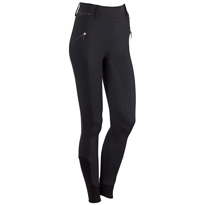 De Rijlegging Harry's Horse Classy Dani fullgrip Black is de perfecte combinatie van elegantie en functionaliteit voor iedere ruiter. Deze rijlegging heeft een hoge tailleband met riemlussen waarvan één brede lus op de achterkant is versierd met schitterende kristallen, wat zorgt voor een luxe uitstraling. Ook de twee steekzakken zijn afgewerkt met kristallen details, waardoor de look compleet wordt. Het fullgrip zitvlak met siliconenprint biedt optimale grip in het zadel, terwijl de elastische inzet bij de enkels extra comfort geeft in je paardrijlaarzen. Gemaakt van 60% nylon en 40% elastan voor een aansluitende pasvorm en maximale bewegingsvrijheid. Verkrijgbaar bij Ruitersport Equidrôme in Venlo.