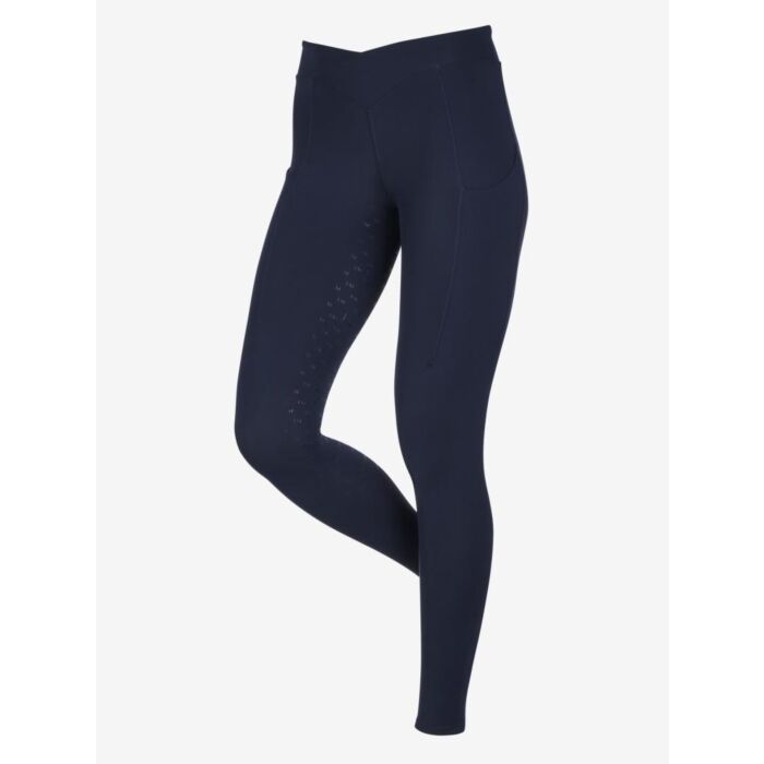De Rijlegging LeMieux Simone Navy in maat 34 is een stijlvolle mid rise rijlegging met overslag taille, halve grip en telefoonzakken, verkrijgbaar bij Equidrôme in Venlo en online.