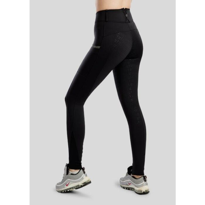 De Montar MoGaia fullgrip rijlegging in zwart combineert een elegante uitstraling met hoog comfort en optimale functionaliteit. Dankzij het ademende en elastische Yati-materiaal, de praktische telefoonzak met stijlvolle gun metal caviartape en het Montar-logo in kristallen biedt deze rijlegging perfecte bewegingsvrijheid, stabiliteit en een luxe look.