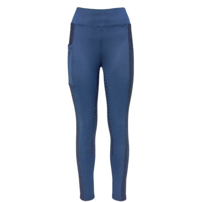 De PK International Toledo fullgrip rijlegging in de kleur Ebony biedt de perfecte balans tussen mode en functionaliteit. Het ontwerp combineert matte en glanzende stoffen die samen zorgen voor een moderne, elegante uitstraling. De subtiel glinsterende stof langs de zijkanten geeft de rijlegging een verfijnde en vrouwelijke touch, terwijl de matte delen de technische kwaliteiten benadrukken en zorgen voor een flatterende pasvorm. Voor extra praktisch gemak is de rijlegging uitgerust met een zak voorzien van een glanzende logo print, die een sportief accent toevoegt. De siliconen fullgrip op de binnenkant van de benen biedt optimale stabiliteit en grip in het zadel, zodat je met vertrouwen en comfort kunt rijden. De Toledo rijlegging is daarmee een onmisbaar item voor iedere ruiter die houdt van stijl, bewegingsvrijheid en betrouwbaarheid. Deze rijlegging is verkrijgbaar bij Ruitersport Equidrôme in Venlo.