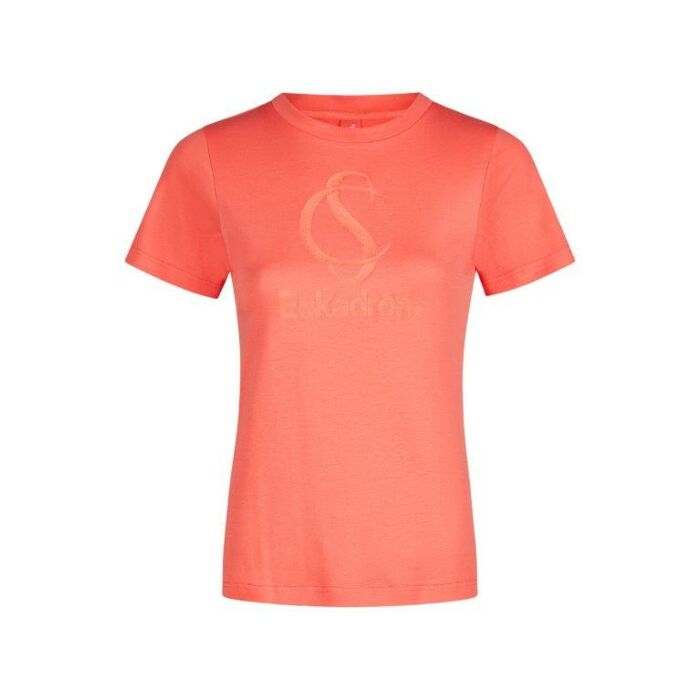 Gemaakt van zachte katoenen kwaliteit, biedt dit t-shirt een comfortabele en ademende pasvorm, ideaal voor dagelijks gebruik of tijdens lichte trainingen. De slim-fit snit zorgt voor een aansluitende en flatterende pasvorm, die mooi om het lichaam vormt zonder bewegingsvrijheid te beperken. De chique glitterprint met Eskadron-embleem op de voorkant geeft het shirt een stijlvolle touch, terwijl het subtiele Eskadron-label op de achterkant de exclusieve uitstraling benadrukt. Wil jij een comfortabel en trendy shirt dat perfect aansluit bij jouw ruiteroutfit? Het Eskadron shirt in Coral blossom is nu verkrijgbaar bij Ruitersport Equidrome!