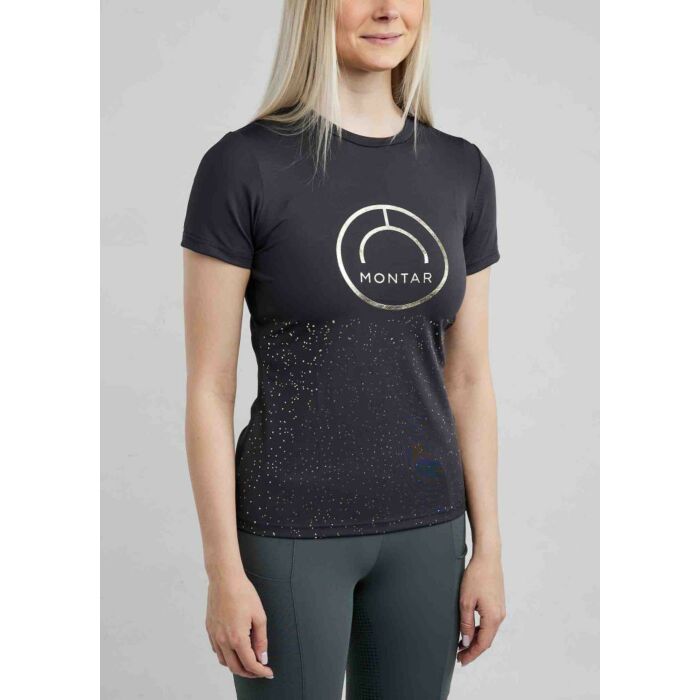 Het Shirt Montar MoCille Slate Grey maat L biedt een perfecte balans tussen draagcomfort en een elegante uitstraling en is geschikt voor zowel het rijden als dagelijks gebruik, de grote Montar print in champagnekleur op de borst zorgt voor een luxe en rustige look die perfect past bij de Slate Grey kleur, de verfijnde stipdetails geven het shirt een moderne en vrouwelijke afwerking, het lichte en ademende materiaal voelt comfortabel aan en beweegt soepel mee met het lichaam zonder zijn vorm te verliezen, dit Montar shirt in maat L is een veelzijdige toevoeging aan iedere ruitergarderobe en is verkrijgbaar bij Equidrôme in Venlo.