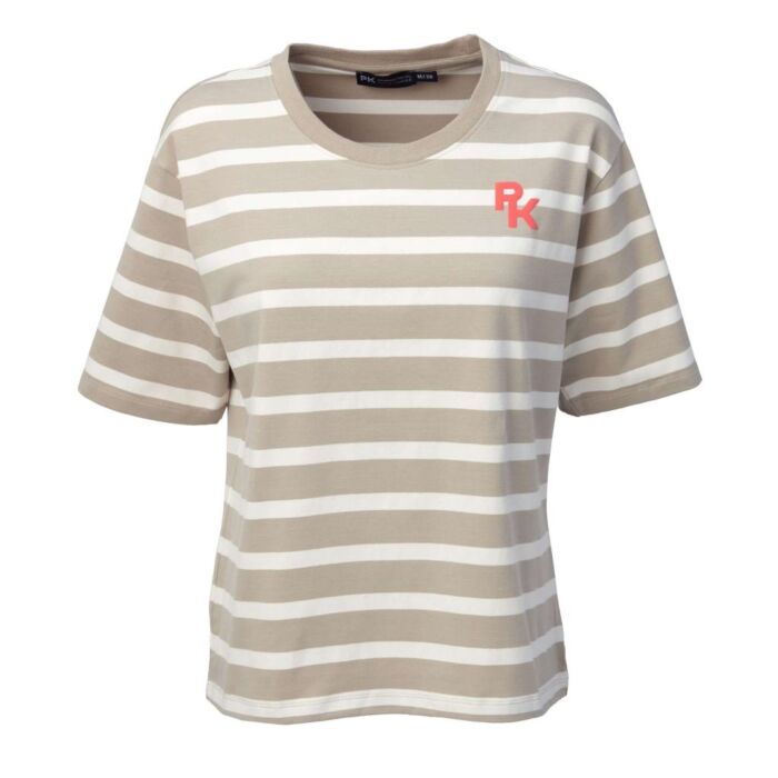 Het Shirt PK International Dalmore Feather in maat L is een losvallend katoen elastaan T shirt met sportieve streepjes en een opvallend zomerdetail.