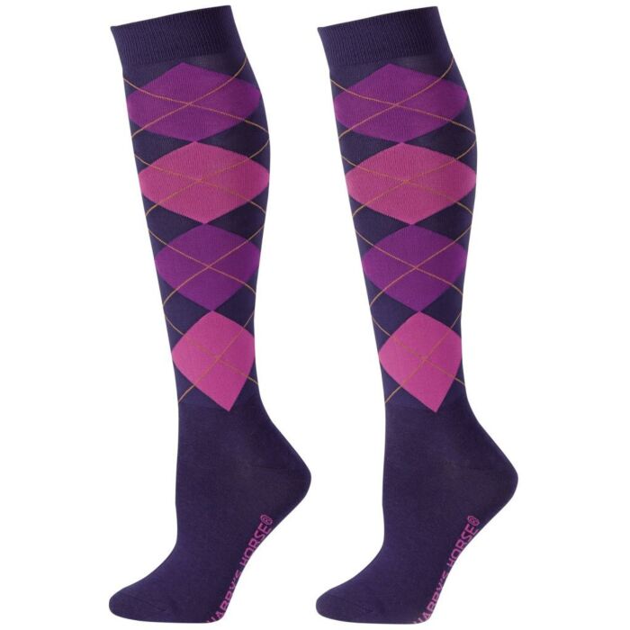 Sokken Harry's Horse Puk Eclipse, comfortabele kniekousen met stijlvol argyle ruit patroon.