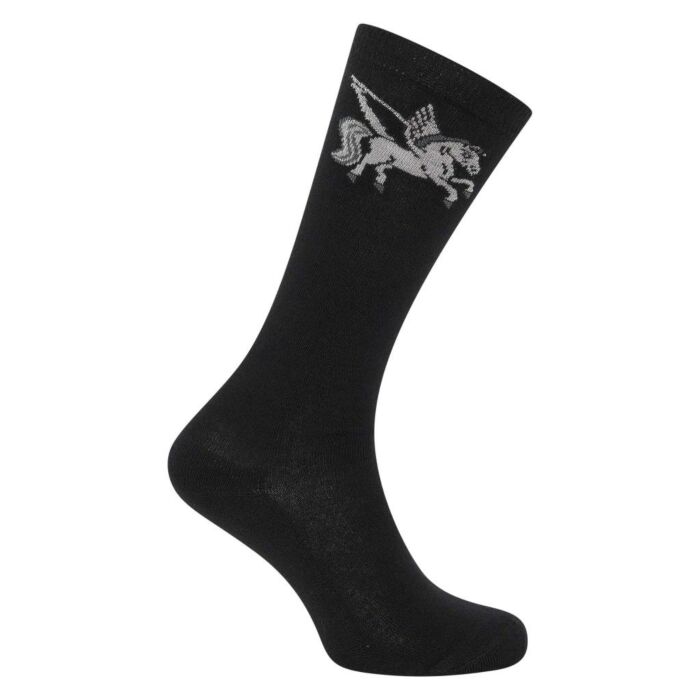 De Imperial Riding Pegasus sokken in de kleur Black combineren stijl en comfort voor elke ruiter. Dankzij de katoenen voet bieden deze sokken een zachte en ademende basis, ideaal voor langdurig gebruik in rijlaarzen of stalschoenen.
