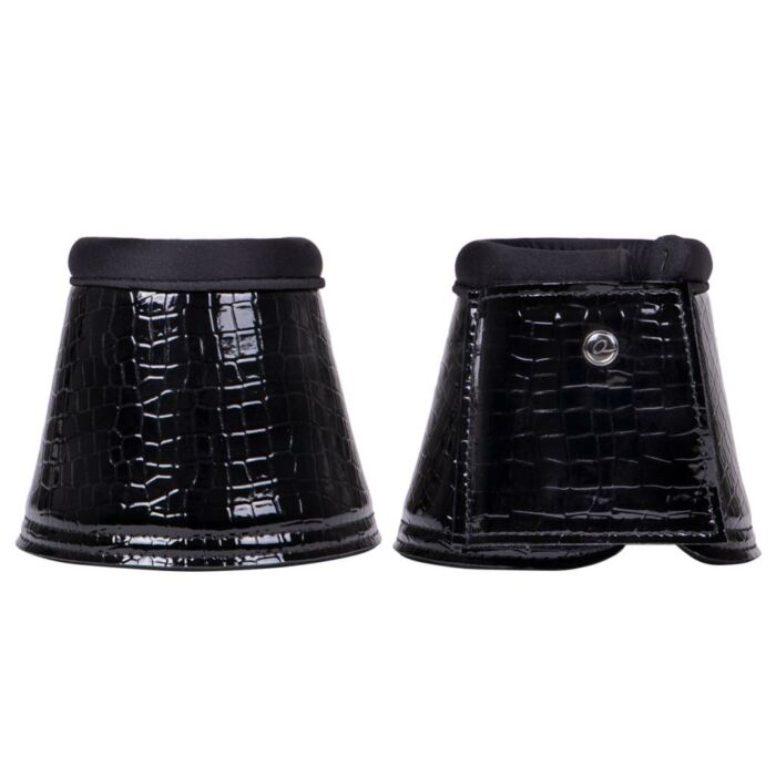 Deze springschoenen in de kleur zwart uit de zomercollectie van QHP maken je Djune set compleet! De springschoenen vangen mogelijke klappen van de achterbenen goed op en beschermen zo de kroonrand en hoefballen. Door de laklederen crocoprint en de zwarte Q-pin hebben de springschoenen een stijlvolle uitstraling. De springschoenen zijn te bevestigen door een dubbele klittenband sluiting
