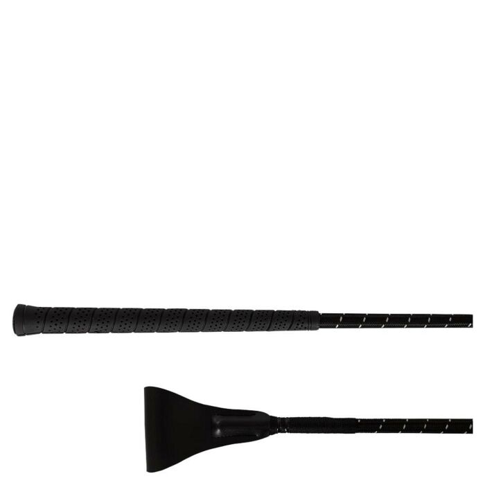 De zweep heeft een handvat met zeer goed anti-slippatroon waardoor een perfecte grip hebt tijdens je wedstrijd of training. De zweep is verkrijgbaar in de lengtes 40, 50 en 60 cm, wat ervoor zorgt dat deze zweep toegestaan is op wedstrijden. Tot slot beschikt deze zweep over een open flap van PU-leer.