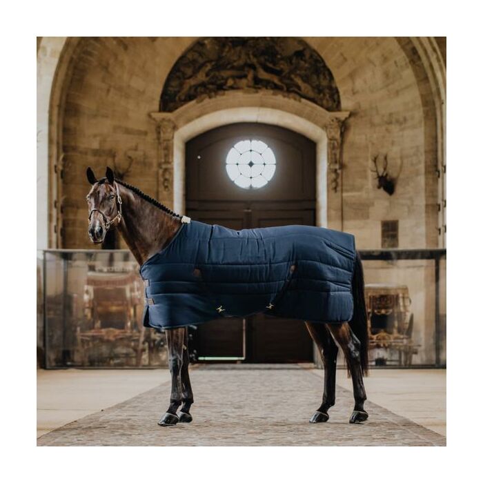 De Stable Rug Classic is met zijn hoogwaardige stoffen en tijdloze look ontworpen om lang mee te gaan al decenia. De materialen zijn zorgvuldig getest en geselecteerd, zodat het vloerkleed duurzaam en zeer gebruiksvriendelijk is. Dankzij de 3 verschillende diktes kun je de deken kiezen die het beste past bij de behoefte van je paard. De buitenkant van de staldeken is gemaakt van 900D Ripstop polyester. Ribstop-stof is een stof die versterkt garen bevat, waardoor het ongelooflijk moeilijk is om het tapijt te scheuren. Een ander voordeel van deze stof is dat het spaanders afstotend is, zodat je gemakkelijk hooi en stro van het kleed kunt borstelen. De vulling aan de binnenkant kan 100g, 200g of 300g zijn, afhankelijk van de behoefte van je paard. De vulling is gemaakt van een fiberfill, die dezelfde prestaties levert als dons zonder geurtjes op te nemen. De binnenvoering van het vloerkleed is een micro-polyestervezel, die een zachte katoenen touch heeft. De Staldeken Classic kan gedragen worden in combinatie met onze Turnout dekens of met een onderdeken. De deken blijft mooi op zijn plaats dankzij onze polyester microvezel, twee gespen aan de voorkant en twee kruissingels. Het vloerkleed is machinewasbaar op 30 graden (geen droger). Voor het beste resultaat adviseren wij het vloerkleed maandelijks te wassen.
