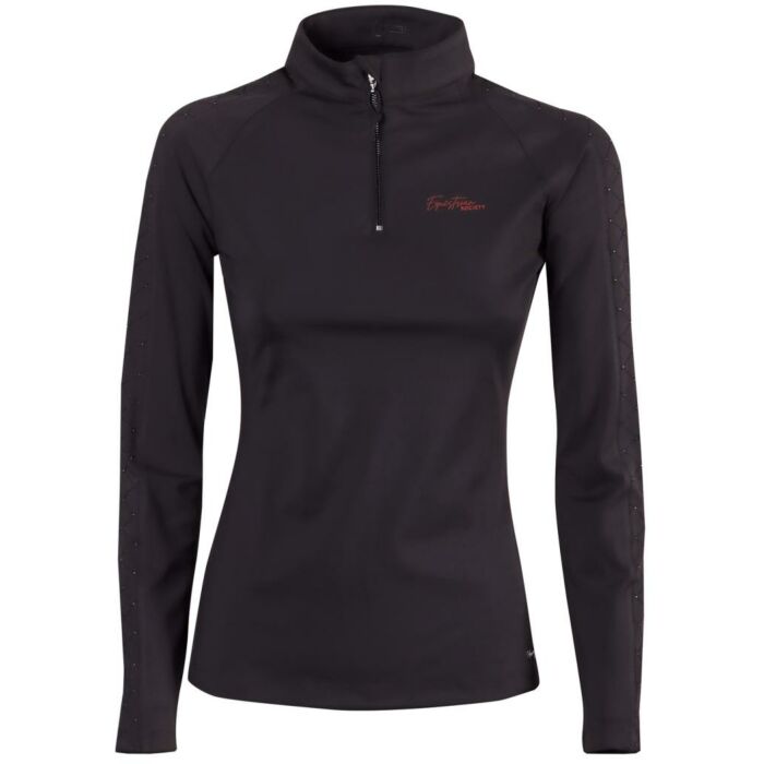 Trainingsshirt Harry's Horse Classy Indy Jet Black met kristallen details, sierstiksel en opstaande kraag voor een elegante uitstraling.