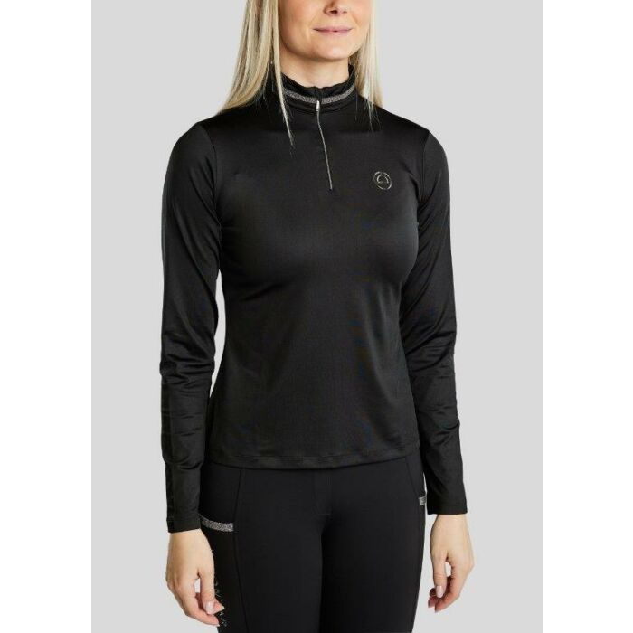 Het Montar MoGaia trainingsshirt met lange mouwen in Black combineert een luxueus design met optimaal comfort, functionaliteit en subtiele gun metal details, perfect voor ruiters die elegantie en prestaties willen verenigen.