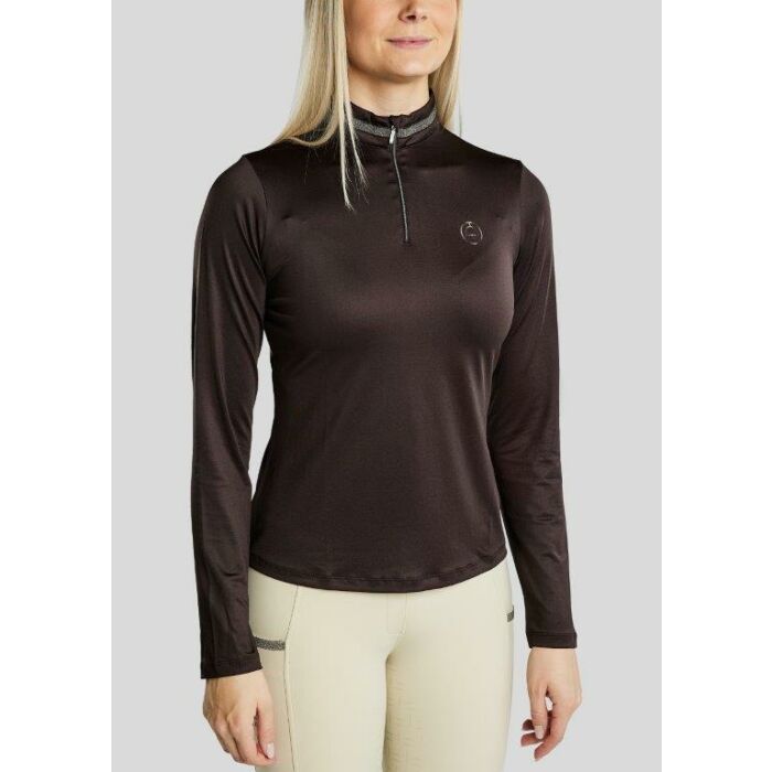 Het Montar MoGaia trainingsshirt met lange mouwen in Brown combineert een luxe uitstraling met hoogwaardig draagcomfort, verfijnde details en optimale functionaliteit, ideaal voor ruiters die zowel stijl als prestaties waarderen.
