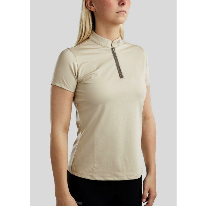 De elegante opstaande kraag geeft het shirt een verfijnde uitstraling en wordt afgewerkt met een subtiel Montar-logo in strass, wat een vleugje luxe toevoegt zonder te overheersen. De glinsterende ritssluiting aan de voorzijde zorgt niet alleen voor een sportieve look maar maakt het ook mogelijk om het shirt gemakkelijk aan en uit te trekken. Door de vrouwelijke pasvorm sluit het MoGloria shirt mooi aan op het lichaam en accentueert het je figuur, zonder te strak te zitten. Dit trainingsshirt is niet alleen functioneel maar ook stijlvol genoeg om door te dragen buiten de stal. Verkrijgbaar bij Ruitersport Equidrôme, waar je altijd verzekerd bent van de nieuwste Montar collectie en de beste kwaliteit voor ruiters die net dat beetje extra willen.