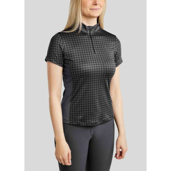 Het Trainingsshirt Montar MoHannah Grey Slate maat L combineert een tijdloos patroon met een moderne sportieve uitstraling en is ideaal voor dagelijks gebruik en training, de allover pied de poule print zorgt voor een onderscheidende en elegante look, het lichte en ademende materiaal is elastisch sneldrogend en vochtregulerend waardoor je ook tijdens intensieve trainingen comfortabel blijft, de vrouwelijke pasvorm biedt een prettige aansluiting zonder bewegingsvrijheid te beperken, het Montar logo in gun metal op de borst geeft het shirt een subtiele luxe uitstraling, dit Montar trainingsshirt is verkrijgbaar bij Equidrôme in Venlo.