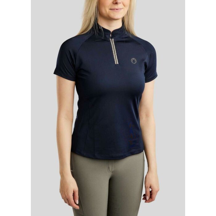 Het Trainingsshirt Montar MoLila Champagne Crystals Navy maat L is ideaal voor ruiters die comfort en een verfijnde uitstraling willen combineren, de champagnekleurige crystal tape langs de rits zorgt voor een luxe accent terwijl het Montar logo op de borst met kleine champagne crystals het shirt een exclusieve uitstraling geeft, het lichte en ademende materiaal voelt prettig aan op de huid en droogt snel waardoor het shirt ook tijdens intensieve trainingen comfortabel blijft, dankzij de elastische stof biedt het shirt optimale bewegingsvrijheid, dit Montar trainingsshirt is geschikt voor dagelijks gebruik en wedstrijden en is verkrijgbaar bij Equidrôme in Venlo.