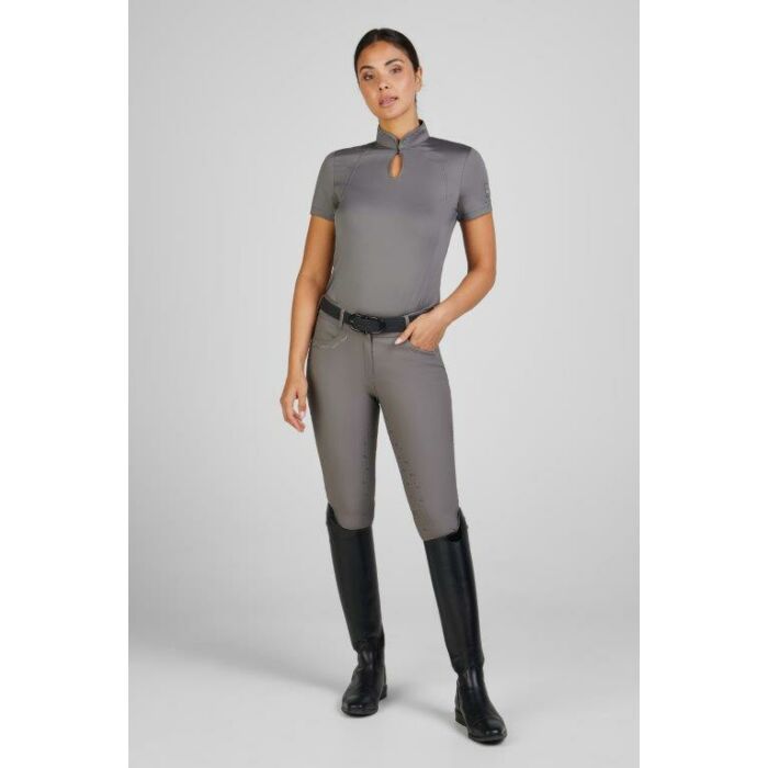 De lange deelnaden zorgen voor een slanke en flatterende pasvorm, terwijl de kleine druppelvormige uitsnede bij de hals een verfijnde uitstraling geeft. Het shirt is afgewerkt met een subtiele Rhinestone applicatie langs de kraagrand, wat een vleugje glamour toevoegt zonder overdadig te zijn. Daarnaast vind je een Rhinestone printlabel op de mouw en een fijne Rhinestone versiering op het midden van de rug, waardoor het shirt een luxe uitstraling krijgt. Dit stijlvolle en sportieve trainingsshirt is perfect voor zowel trainingen als wedstrijden en biedt optimale bewegingsvrijheid en ventilatie. Nu verkrijgbaar bij Ruitersport Equidrome – bestel online of bezoek onze winkel om het zelf te ervaren!