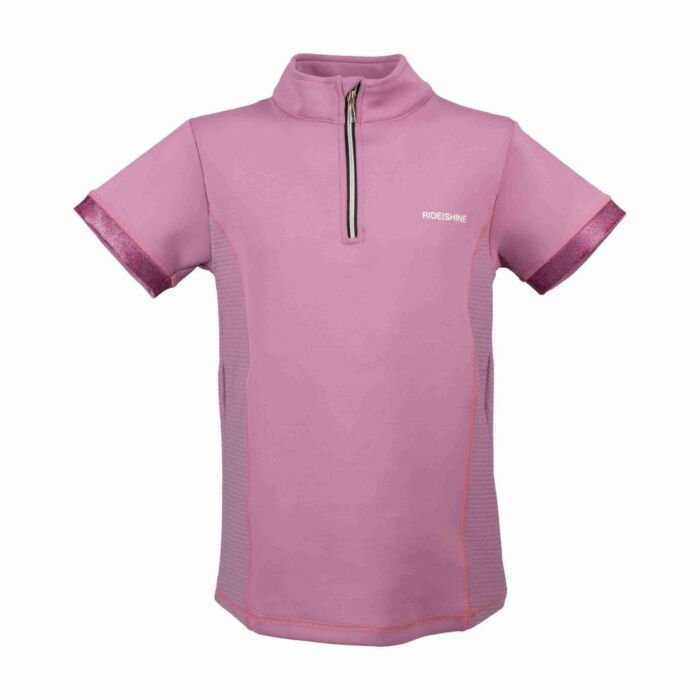 Trainingsshirt Red Horse Miki Thirsty Purple in maat 128 is een functioneel en stijlvol trainingsshirt voor jonge ruiters en maakt deel uit van de Red Horse lijn van Horka, het shirt is gemaakt van een soepele en ademende stof die prettig draagt tijdens het rijden en bewegen op stal, de korte mouwen en de halve rits zorgen voor extra ventilatie en comfort tijdens warmere dagen, terwijl de aansluitende pasvorm optimale bewegingsvrijheid biedt, verkrijgbaar bij Equidrôme in Venlo en online.