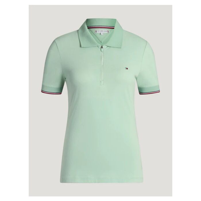 Het Trainingsshirt Tommy Hilfiger Anaheim Belair Mint in maat L is een sportief stretch katoenen poloshirt met ritssluiting en slanke pasvorm, verkrijgbaar bij Equidrôme in Venlo en online.