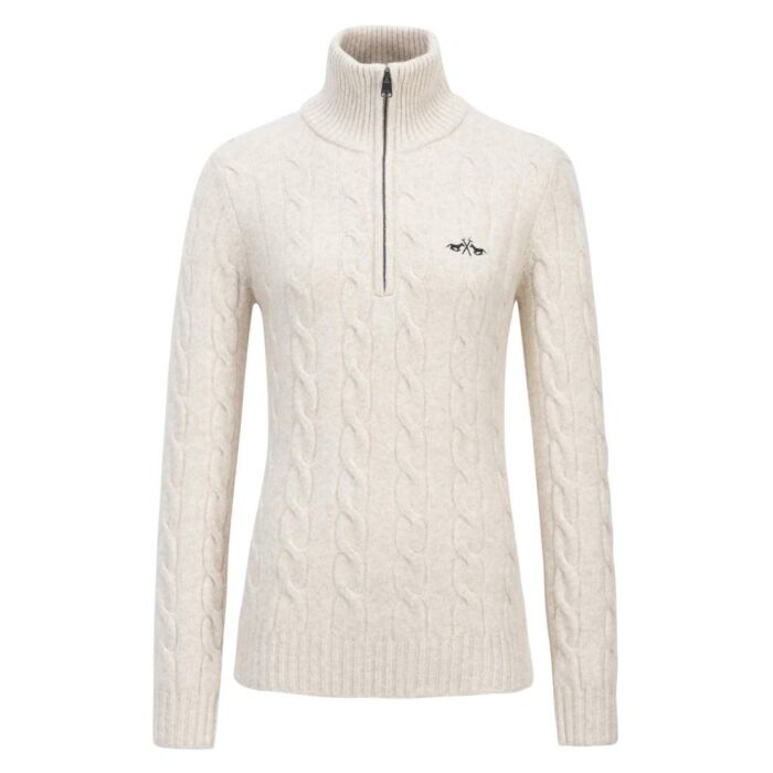 Op zoek naar paardrijkleding die niet alleen comfortabel, maar ook modieus is? Ga dan voor deze trui Dunya in de kleur Naturel uit de wintercollectie van HV Polo.
