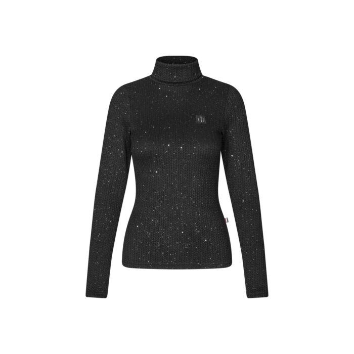 De Trui Kingsland Michela in de kleur Black in maat XS is een elegante en comfortabele trui met een aansluitende pasvorm en subtiele glans, perfect voor ruiters die stijl en draagcomfort willen combineren.
