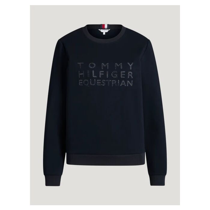 De Trui Tommy Hilfiger Belair Belair Desert Sky in maat L is een vrouwelijke stretch sweater met strass logo graphic en sportieve afwerking, verkrijgbaar bij Equidrôme in Venlo en online.