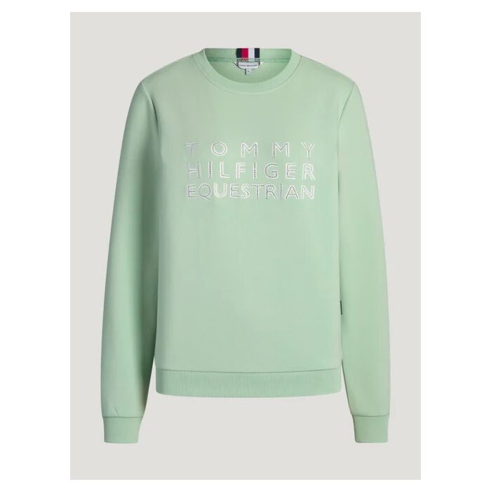 De Trui Tommy Hilfiger Belair Belair Mint in maat L is een vrouwelijke stretch sweater met strass logo en sportieve details, verkrijgbaar bij Equidrôme in Venlo en online.